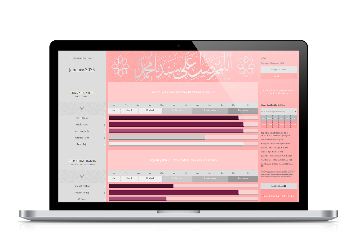 Planner Digital 2026 : Dunia Akhirat, Dengan Sistem Habit tracker Berteraskan Amalan Sunnah Nabi Muhammad ﷺ